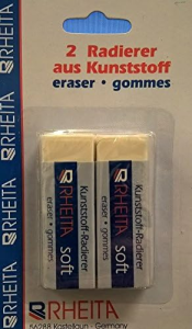 Rheita Radierer aus weißem Kunststoff in Schiebehülse, 2 Stück-Blisterkarte